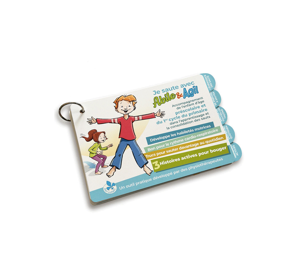Conçu par des physiothérapeutes et entièrement fabriqué au Québec, ce livret accompagne les enfants d’âge préscolaire et du premier cycle du primaire à l’apprentissage et au perfectionnement des différentes variantes de sauts, des habiletés motrices fondamentales à développer dès la petite enfance.